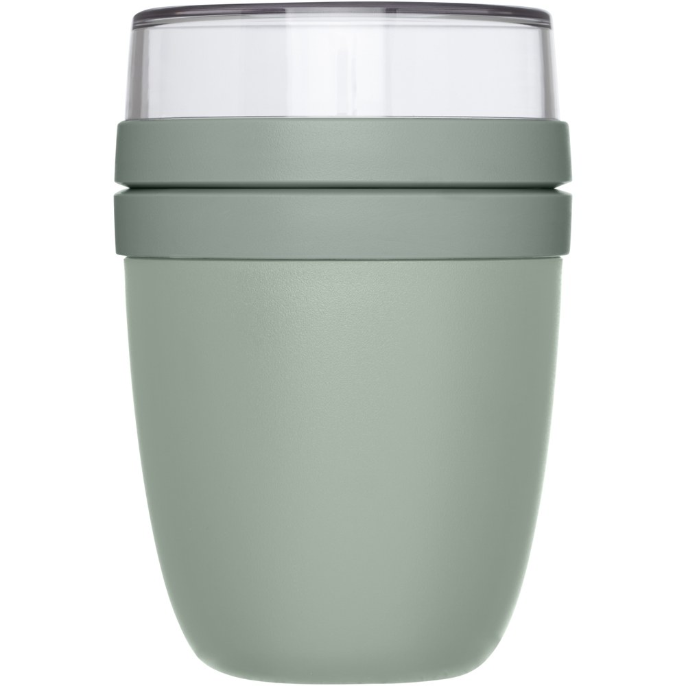 Lunch pot featuring two different compartments to keep the different ingredients separated. Both containers have a separate lid and therefore remain clean. The content of the top transparent container is 200 ml, which means that it can hold about 75 grams of solid food. The capacity of the bottom container is 500 ml. Made of durable material and can be used in the freezer, the microwave (remove the lid) and dishwasher. The top transparent container should not be used in the microwave. Leakproof. BPA free. 2 years Mepal warranty.